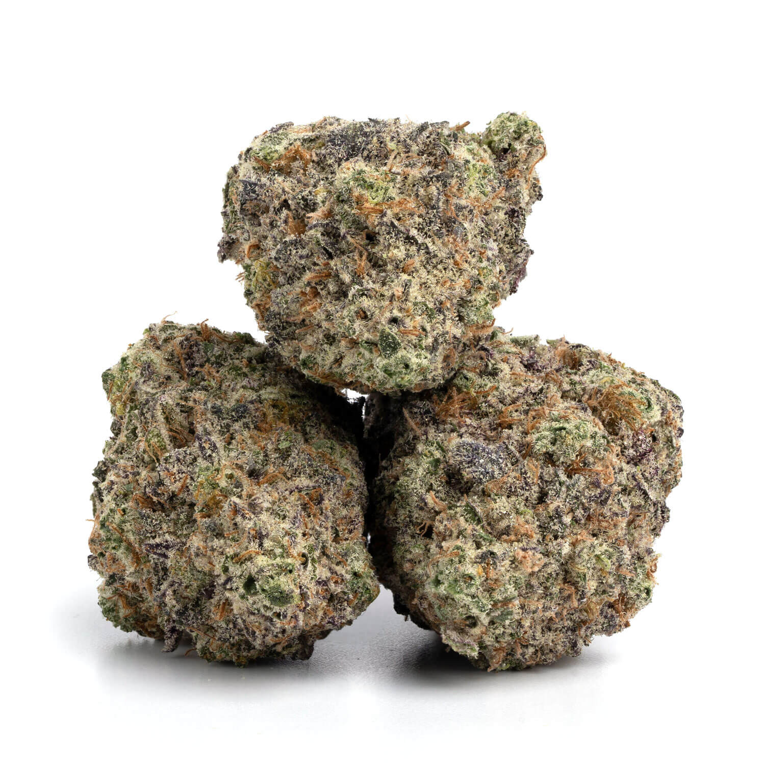 Pink Runtz, like the candy that it’s named after, has a pebble-like appearance. Its buds are oblong and round. They also have a deep olive green colour with shades of intense purple. You’ll also notice orange pistils dotting the bud’s surface underneath the layer of sugary-white trichomes.